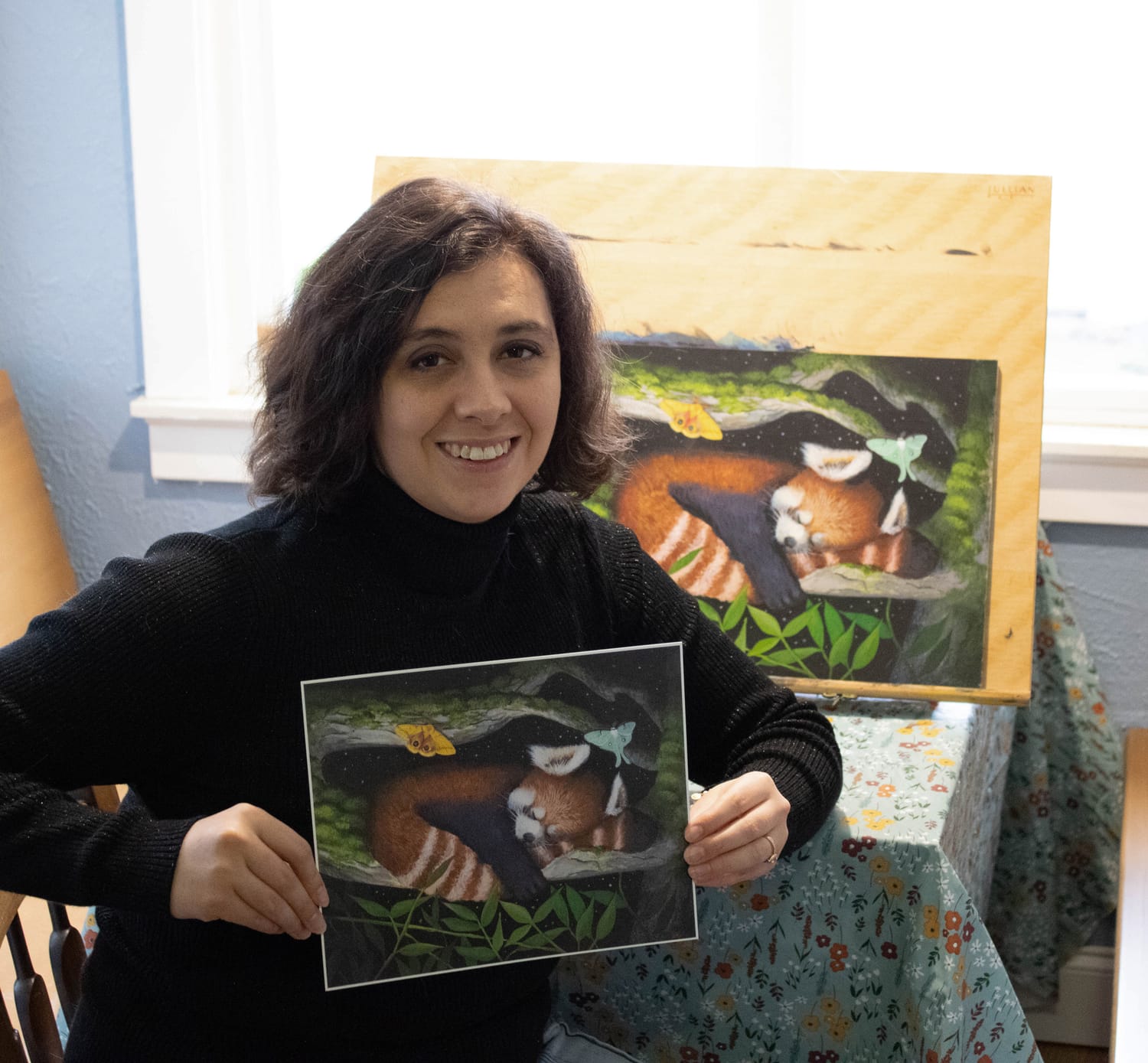 She enjoys working in a variety of styles, mediums, and subject matters, from digital illustration to large-scale figurative and landscape oil paintings.